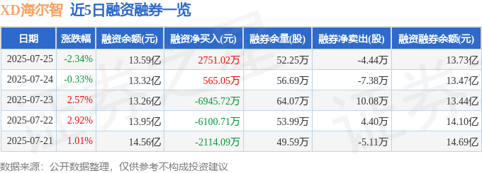 XD海尔智融资融券信息显示,融资方面,当日融资买入8879.36万元,融资偿还6128.34万元,融资净买入2751.02万元。融券方面,融券卖出8300.0股,融券偿还5.27万股,融券余量52.25万股,融券余额1349.62万元。融资融券余额13.73亿元。